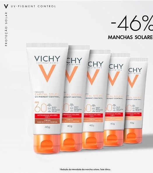 Capital Soleil UV-Pigment Control FPS60 é o protetor solar com cor que possui alta eficácia uniformizadora do tom de pele comprovada dermatologicamente. Protege a pele contra os raios UVA, UVA longo e UVB, prevenindo contra hiperpigmentação causada pela exposição ao sol.